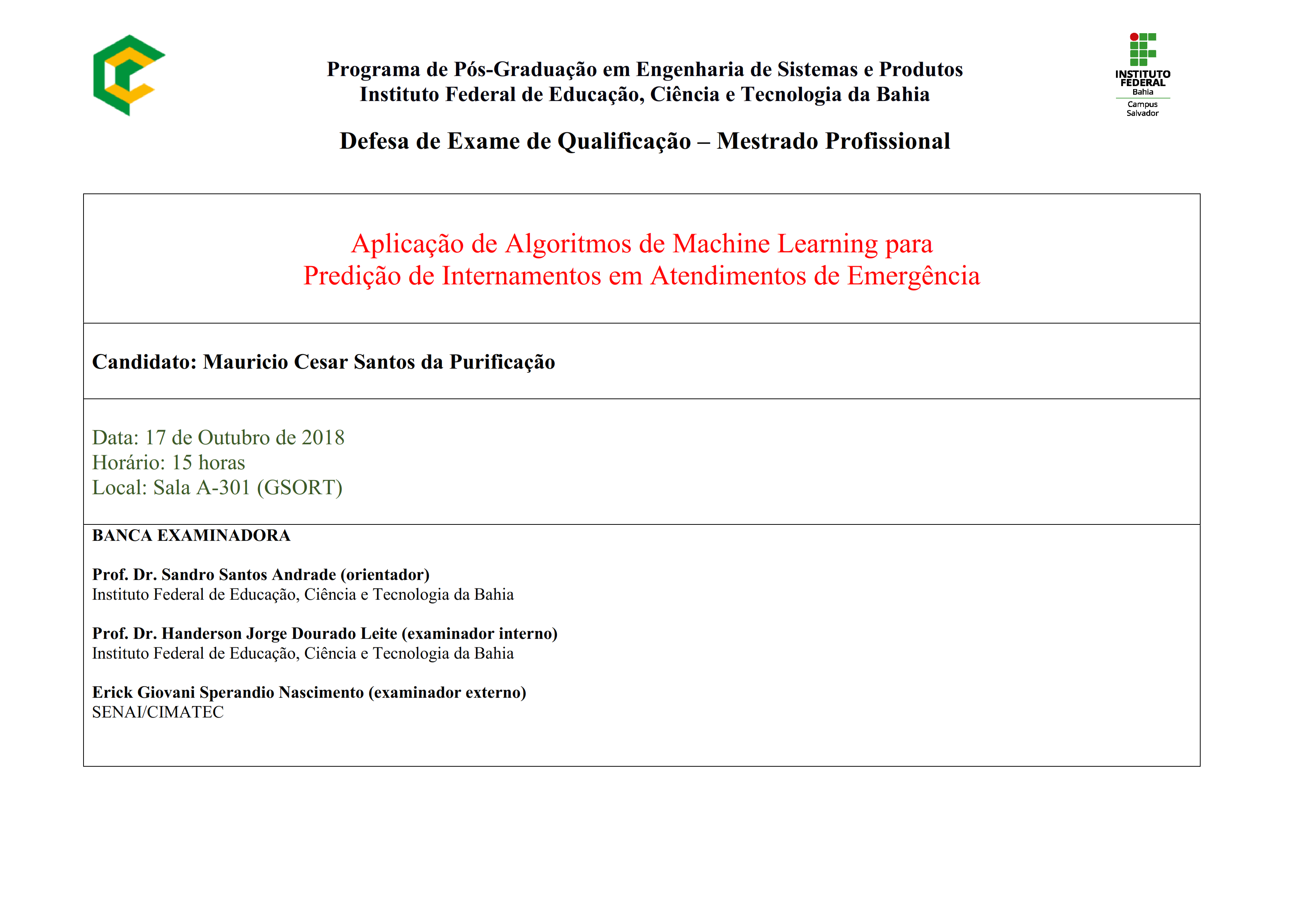 Chamada para Aluno Especial 2025.2 do PPGESP-IFBA
