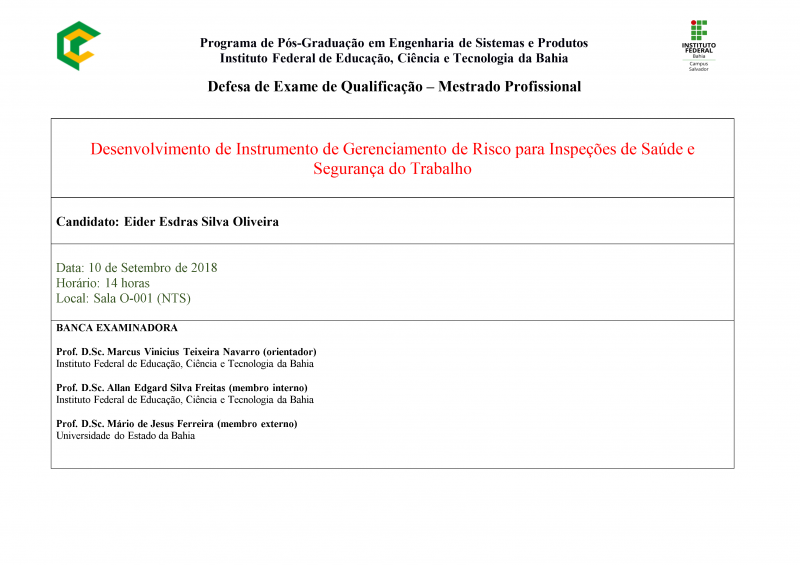 Chamada para Aluno Especial 2026.1 do PPGESP-IFBA