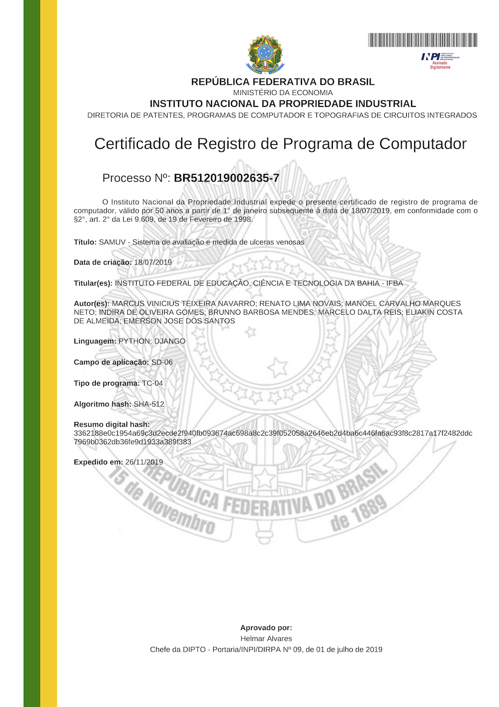 2019 CertificadodeRegistroDeSoftware RafaelBispo