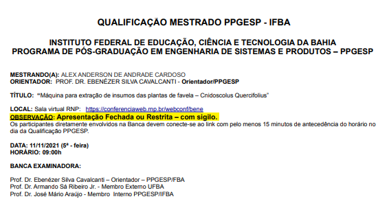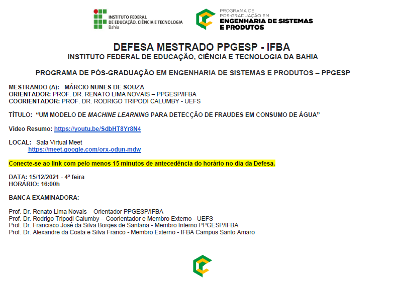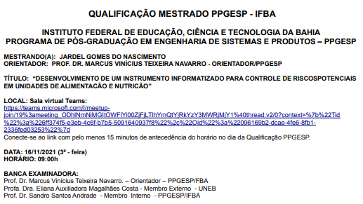 Chamada para Aluno Especial 2025.2 do PPGESP-IFBA