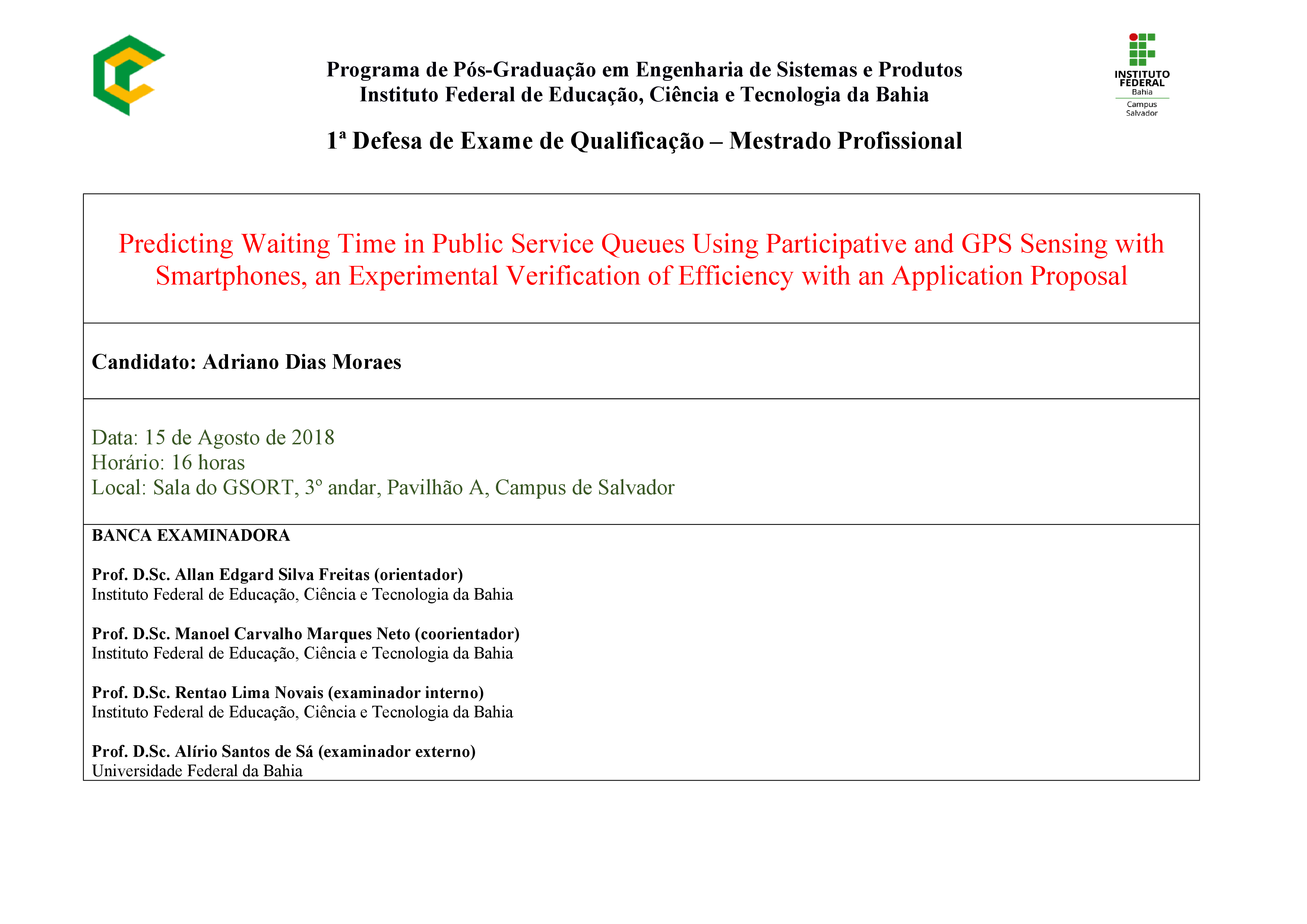 Chamada para Aluno Especial 2025.2 do PPGESP-IFBA